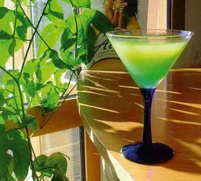 - 1Dans un verre à cocktail givré, mettre 1/3 de glace pilée bien fine.