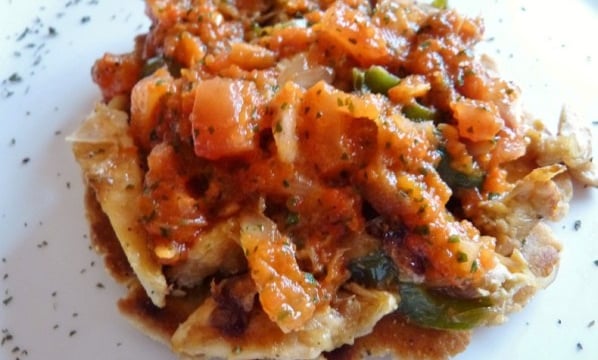 Galette de maïs, à base de blanc de poulet et la sauce Salsa.