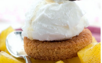 Servez l'ananas chaud ou froid accompagné d'une boule de glace et de palet breton.
