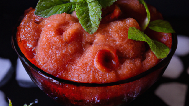 Versez le granité dans des coupelles et servez immédiatement. Décorez avec les feuilles de menthe que vous avez réservées.