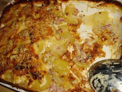 Dans un plat à gratin disposez une première couche de pommes de terre, de lardons et de crème avec un peu de lait (A mettre dans le plat et un peu dans pot de crème) et faire plusieurs couches dans le plat a gratin ! - 2