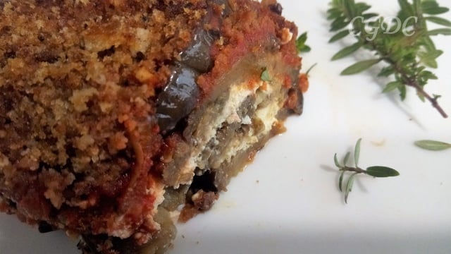 Un gratin à base d'aubergine, un légume que j'adore associé au fromage de chèvre frais et surmonté d'une chapelure faite avec du pain rassis et aillée, un régal !!!!!!