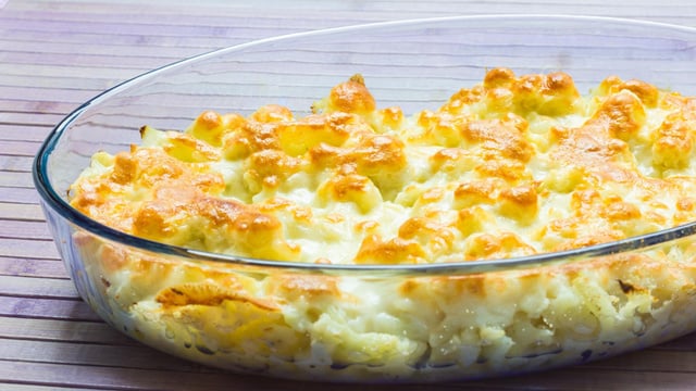 Le gratin sera meilleur si le chou-fleur est encore un peu ferme après la cuisson à l'eau.