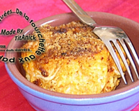 Verser dans un plat à gratin, parsemer de chapelure et de copeaux de beurre.