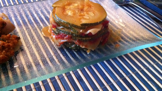 Découper vos lasagnes selon la forme de vos ramequins ou casser des petits carrés que vous déposez ensuite sur la couche de préparation à la tomate.
