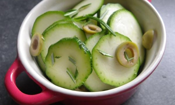 Couper les olives en rondelles et les mettre avec les courgettes, mettre quelques brins de romarin sur le dessus. Parsemer de pecorino (si vous utilisez un blanc d'oeuf, bien le fluidifier et y ajouter le fromage.)