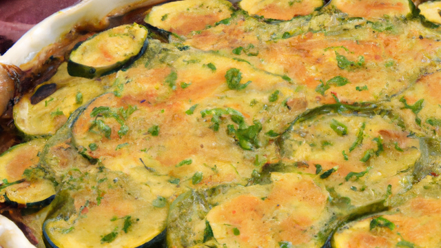 - Prenez des petites courgettes. Lavez-les. Coupez les légumes en rondelles assez épaisses (éplucher la peau si elle est trop épaisse).Pelez les oignons, émincez-les et faites-les fondre dans l'huile bien chaude, dans un plat allant au four, mettre les oignons, salez et poivrez .Mettre les courgettes par-dessus. Battez les oeufs en omelette avec le fromage, la crème fraîche, salez et poivrez.Versez le mélange sur les légumes et faites cuire pendant 20 mn à four chaud. Ajouter le reste le gruyère et faire gratiner.
