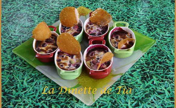 Faire dégeler les fruits, éplucher et couper en dés les fruits frais. Déposer tous les fruits dans les cocottes ou ramequins.