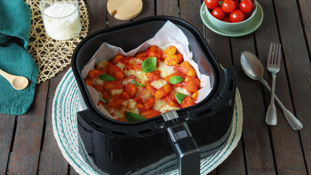 Voilà un gratin de gnocchis savoureux que l'on fait cuire au Airfryer en un rien de temps ! Grâce à sa technologie, le Airfryer permet de gagner du temps par rapport au four traditionnel, et permet donc de faire des économies. D'inspiration italienne, ce gratin de gnocchis est facile à préparer et vous pouvez l'agrémenter avec le fromage fondant de votre choix. Vous allez vous régaler !