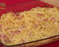 Vous pouvez réaliser ce gratin la veille en le conservant au frigo. Enfournez-le 20 minutes avant de passer à table à 160°C sur chaleur tournante. Et placez en position grill, 5 avant de servir, à 180°C. Vous pouvez remplacer le jambon par des dés de poulet.