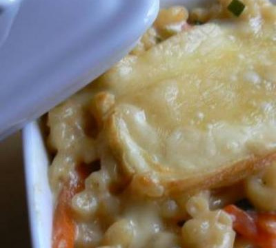 dans un plat à gratins beurré , mettre par couche , les pates , les légumes et le poulet .terminer par des pates ou comme vous voulez.mettre au dessus la sauce crémée au fromage et mettre au final des tranches de fromage