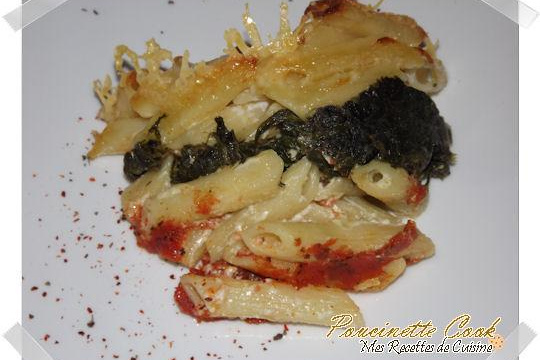 Lorsque les pâtes sont cuites et égouttées, versez la sauce au comté et bien mélanger. Lorsque les épinards sont cuits, les mettre dans une passoire et bien les presser pour retirer au maximum l'eau pour éviter d'avoir de l'eau dans votre gratin. Ne pas hésitez à utiliser une fourchette et bien presser. Ajouter aux épinards une petite cuillère à soupe de crème fraîche et bien mélangez.