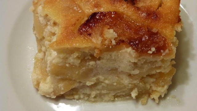 Un gâteau moelleux, apporté par la ricotta et de délicieuses pommes fondantes flambées au Calvados, un délice.