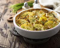 La recette classique du gratin de pommes de terre de notre enfance, ici légèrement revisitée avec du bacon.