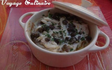 Préchauffer le four à 180° (th.6). Dans les minis-cocottes disposer dans le fond, un lit de pommes de terre coupées en rondelles ajouter l'effilochée de raie puis napper de sauce citronnée aux câpres. Parsemer de persil ciselé et de poivre.