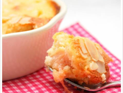 Délicat mariage de l'acidité de la rhubarbe à la douceur de l'amande pour un dessert réconfortant.