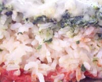 Recouvrez avec le riz puis par une couche d'épinards aux lardons et l'ail écrasé.