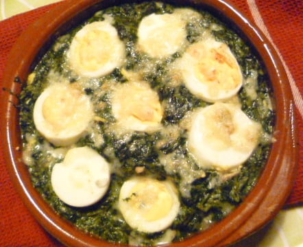 Verser cette préparation dans des cassolettes individuelles, disposer les oeufs coupés en rondelles et parsemer de fromage râpé.