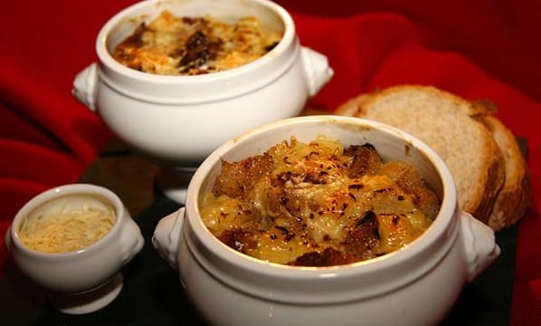 Faites revenir l'oignon finement émincé dans du beurre. Quand il est bien doré saupoudrez de farine avant de mouiller avec le bouillon chaud. Laissez mijoter 15mn