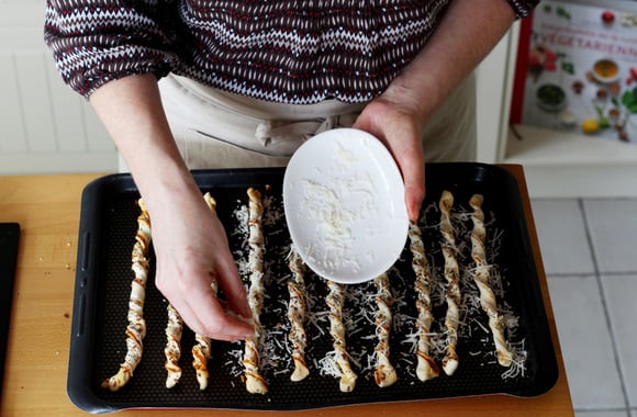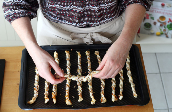 6Torsadez chaque bande et déposez-les sur une plaque de cuisson.