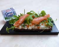 Des petites tartines grillées, des rillettes et des dés de saumon marinés avec de la betterave rouge et de la vodka ! Le saumon est subtilement sucré et aromatisé, un peu comme le Gravlax ! Les amateurs apprécieront cette déclinaison originale.