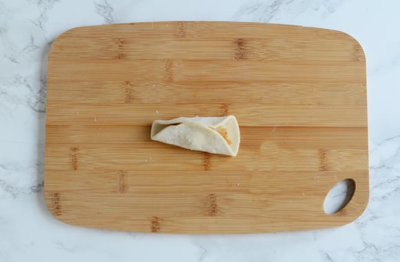5Joignez les 2 bouts de pâte qui sont au milieu et pincez-les. Vous allez obtenir un demi-cercle garni.
