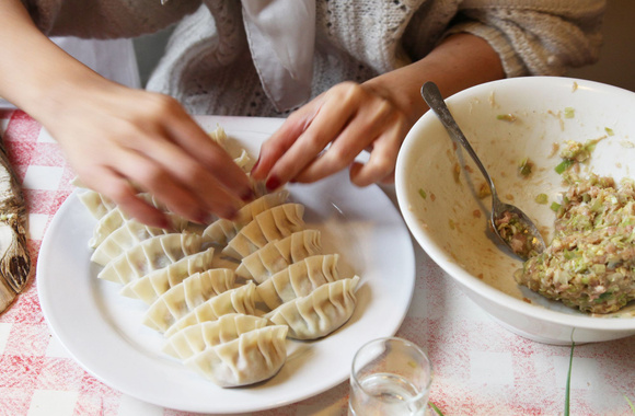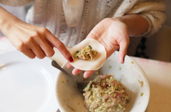Si vous ne trouvez pas de pâte à gyozas, vous pouvez utiliser de la pâte à raviolis chinois en la détaillant en cercles.