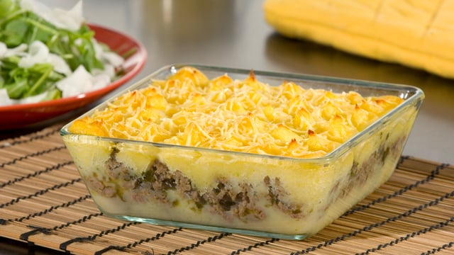 Un délicieux hachis Parmentier ! Ajoutez au bon goût de l'écrasé de pommes de terre et de la viande hachée, des oignons, du persil, du fromage frais et surtout de la moutarde forte pour relever le tout.