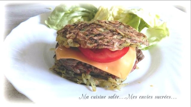 Façonnez 4 galettes et faites-les cuire 5 minutes de chaque côté, dans une poêle recouverte de la feuille de cuisson. Réservez au chaud.