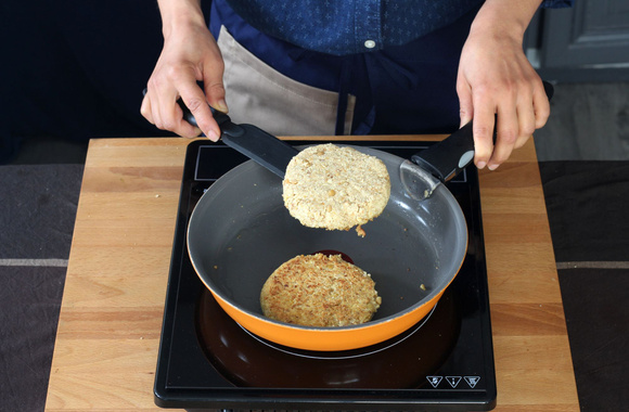 5Faites cuire les galettes dans une poêle avec un filet d'huile d'olive, 4 minutes de chaque côté.