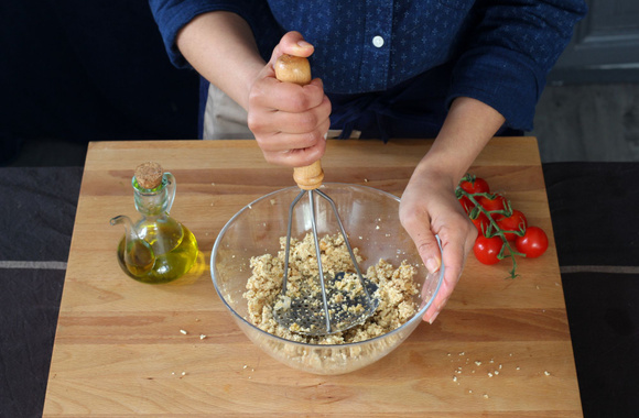 2Écrasez à l'aide d'un presse purée ou un robot mixeur. Ajoutez ensuite la maïzena puis assaisonnez.