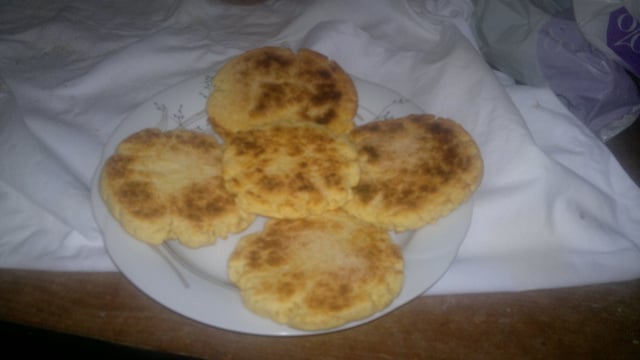 Faire chauffer une poêle, saupoudrer de la semoule façonner des petites boules, les aplatir a l'aide d'un emporte pièce pour obtenir un cercle de 1 cm d'épaisseur , laisser cuire sur feu doux jusqu'à ce qu'il soit doré en dessous, retourner de l'autre côtés à l'aide d'un couvercle et laisser dorer.