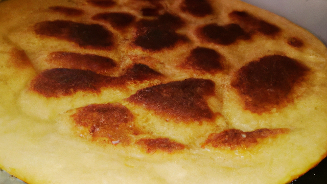 Saupoudrer la pâte de semoule et mettre dans une poêle anti-adhésive. Aplatir comme une pizza et faire des trous avec une fourchette au milieu.