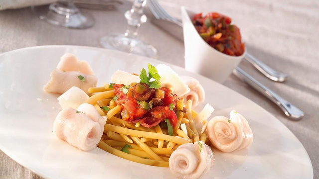 Pendant ce temps, roulez les filets de sole en les maintenant avec un cure-dent. Puis cuisez-les également à la vapeur. Disposez les Haricots Beurre Cassegrain dans les assiettes. Versez au centre la préparation à base de légumes, puis ajoutez les filets de sole autour.