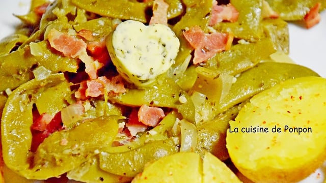 Je présente une recette qui m'a été donnée par une amie dentellière. J'ai toujours beaucoup de difficultés à trouver des recettes différentes pour cuisiner les haricots du potager. Et lorsque celle-ci m'a été expliquée, je me suis mise aux fourneaux rapidement et en effet, une véritable merveille ces haricots mijotés au coin du feu dans une cocotte, ils se dégusteraient à la fourchette en cachette, sans problème!