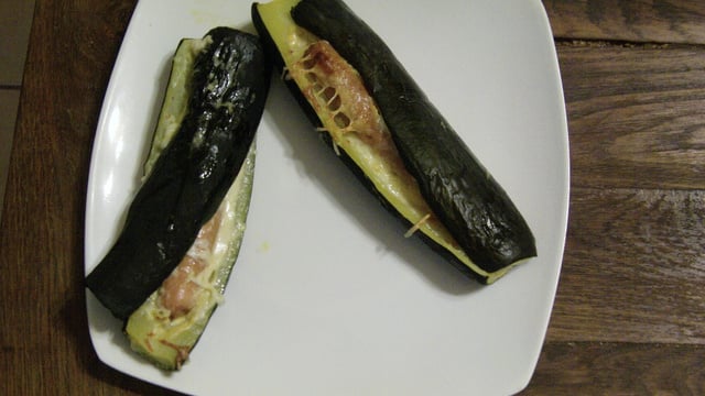Mettre les cougettes dans de l'eau salée et faire blanchir pas plus de 10mn au bout de 5mn planter un couteau dans la courgette il faut qu'elle reste ferme car elle va finir de cuire au four