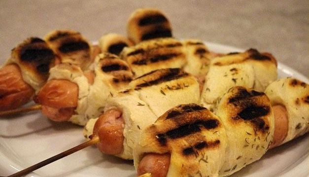 Entourer chaque saucisse d'un boudin de pâte à pain.