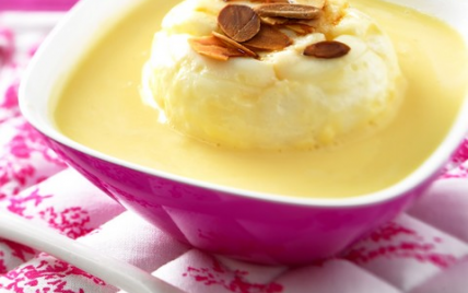 Démoulez l'île flottante dans un plat creux ; entourez-la de crème anglaise. - 4