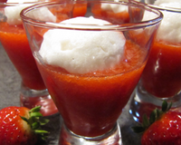 Versez le coulis de fraises dans les verrines. (Vous pouvez sucrer le coulis de fraises, mes fraises étant assez sucrées, je n'ai rien rajouté).