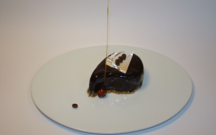 - 5Dressage :Démoulez les entremets. Retirez le rhodoïd. Glacez-les, puis laissez reposer. Posez chaque larme dans une assiette. Décorez avec un bel éclat de feuille d'argent, 3 grains de café, une noisette caramélisée dans l'assiette, et entourez la larme avec un peu de poudre de noisettes caramélisées. Dégustez avec beaucoup de gourmandise !