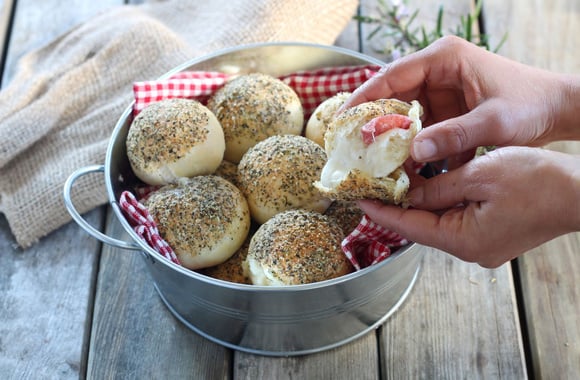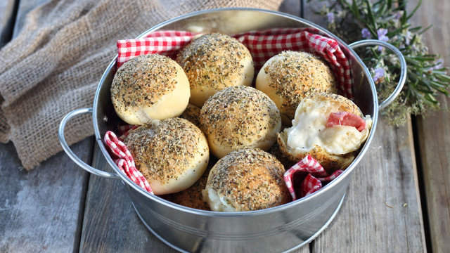 Voilà des petits pains à l'italienne farcis façon pizza. C'est l'idéal pour un pique-nique ou pour un plateau télé.