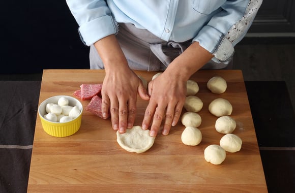 1Divisez votre pâte à pizza en 15 morceaux.