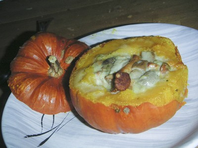 Garnir les citrouilles, mettre au four à 180° pendant 15 min.