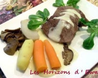 Déposer la viande coupée en tranches fines sur l'assiette et napper de sauce au chaource. Servir avec les cèpes, des légumes de saison et le reste de sauce en saucière.