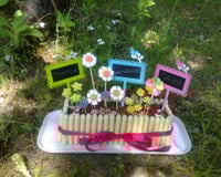 Beurrer et fariner un moule à cake (pour la forme de la jardinière !), verser y la préparation et enfourner 35 à 45 minutes selon votre four th.5. Vérifier la cuisson au couteau, la lame doit ressortir propre. Démouler aussitôt au sortir du four et laisser refroidir sur une grille.