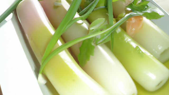 Coupez les poireaux en deux dans la longueur et formez des nids en utilisant 4 demi-poireaux et placez-les dans des assiettes.