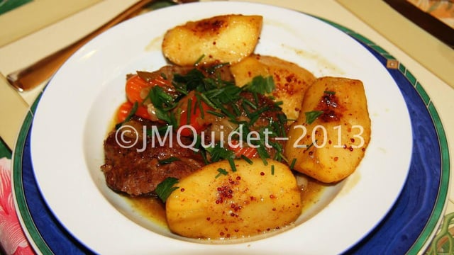 Vous pouvez récupérer la marinade pour cuisiner les pommes à la poêle (qui vont légèrement caraméliser) ou la mettre dans la cocotte avec la préparation. - 3