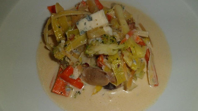 Ajouter la crème de fourme d'Ambert aux légumes.