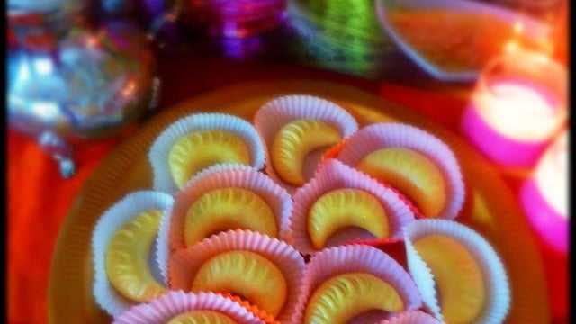 Renouveler l'opération jusqu'à épuisement des cercles de pâte et de farce puis décorer le dessus avec une pince lune ou à défaut, vous les saupoudrez à la fin de sucre glace.