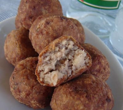Ajouter l'oignon, les oeufs, le cumin, l'origan, l'ouzo, le sel et le poivre et bien malaxer.